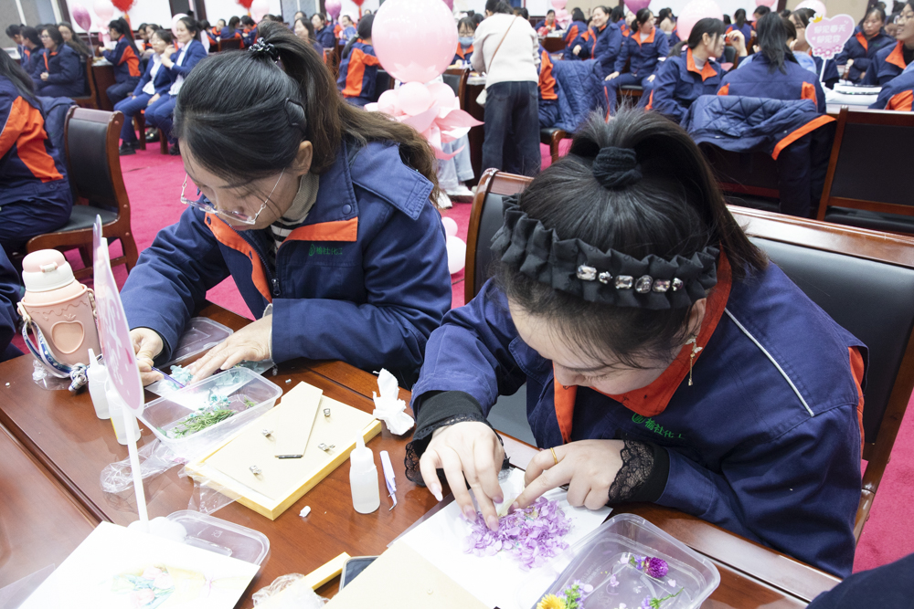 隨后進(jìn)行的手工制作活動更是互動頻頻,在老師耐心指導(dǎo)下,女職工們圍坐在一起變身 "巧工匠",興致勃勃地體驗(yàn)著各類DIY制作。大家充分發(fā)揮創(chuàng)新思維,互相交流、互相學(xué)習(xí),現(xiàn)場歡聲笑語不斷。在一雙雙巧手的精心雕琢下,一件件精美的作品相繼誕生,每一件作品都承載著女職工們獨(dú)特的創(chuàng)意與對美的理解。