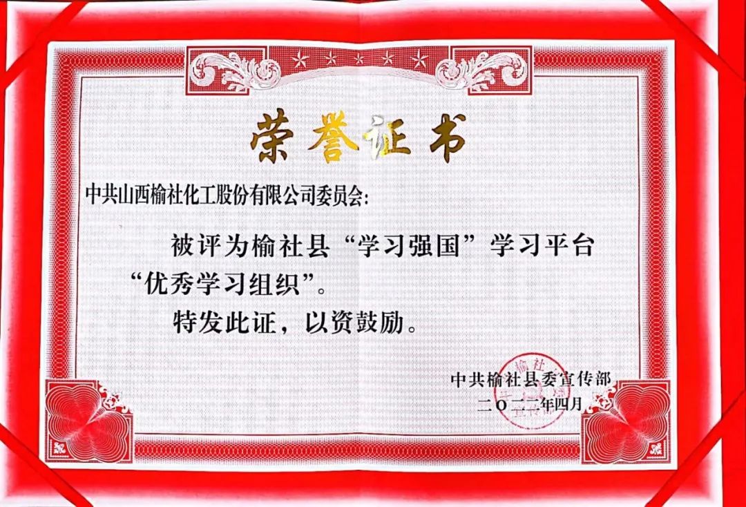 中共山西榆社化工股份有限公司委員會榮獲“學習強國”學習平臺“優(yōu)秀學習組織”獎