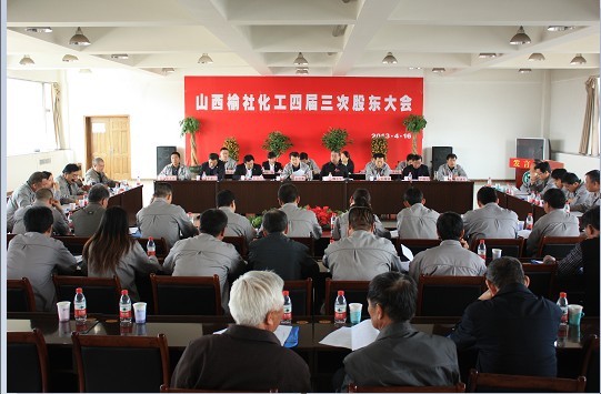 2013年4月16日上午,山西榆社化工股份有限公司在五樓會(huì)議室隆重召開(kāi)第四屆第三次股東大會(huì),公司董事會(huì)、監(jiān)事會(huì)、股民代表出席會(huì)議。