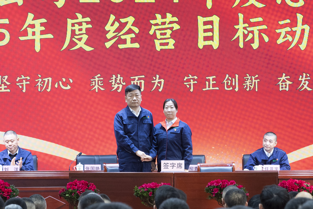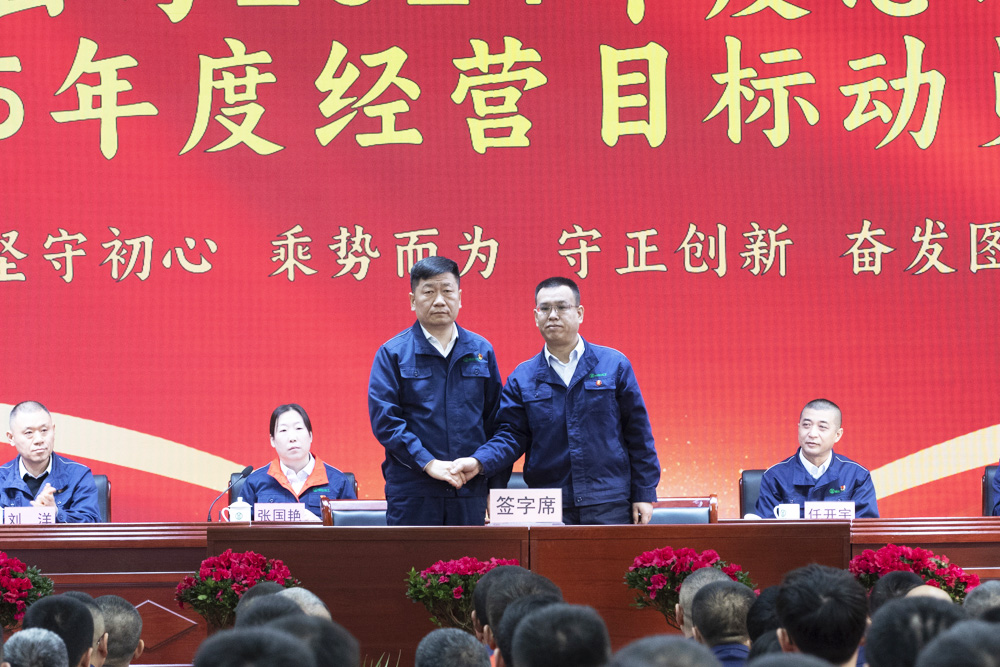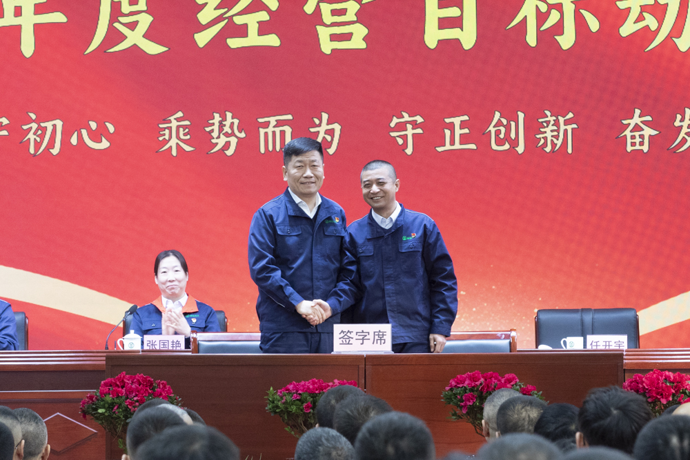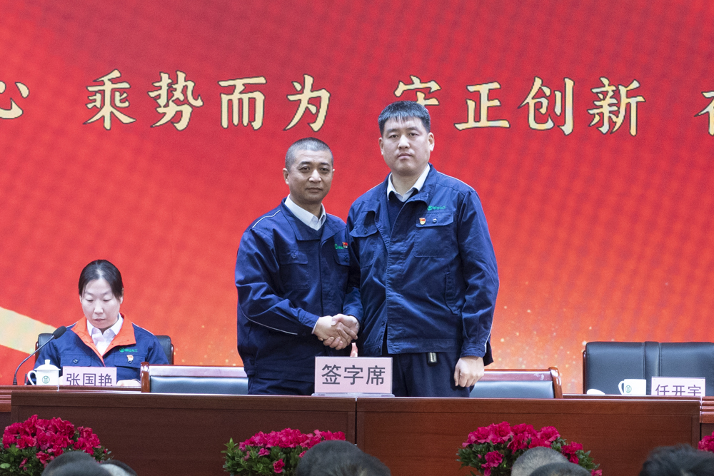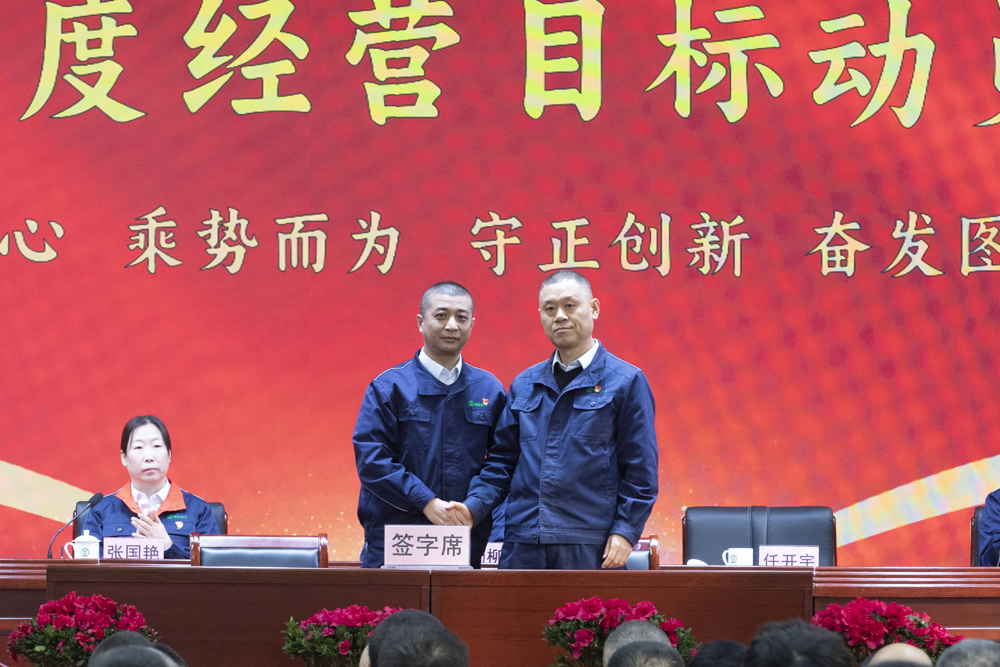公司黨委書記、董事長楊柳青分別與總經(jīng)理、財(cái)務(wù)總監(jiān)、人力資源負(fù)責(zé)人簽訂目標(biāo)責(zé)任書,黨委副書記、總經(jīng)理任開宇分別與總工程師、山西榆化精細(xì)化工有限公司法人代表、榆社縣遠(yuǎn)安物流有限公司負(fù)責(zé)人簽訂目標(biāo)責(zé)任書。