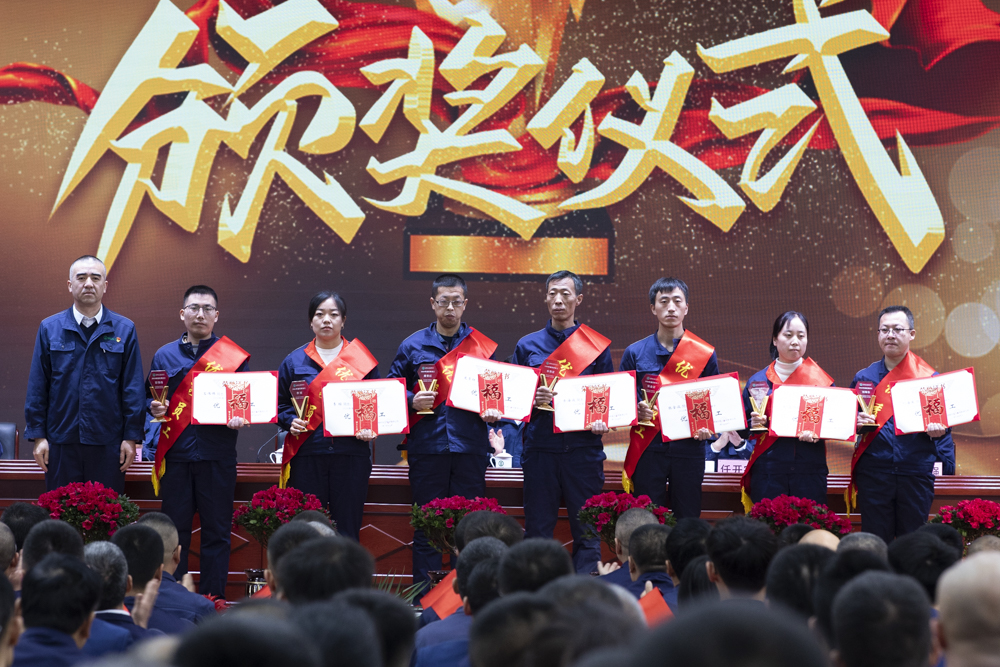 大會(huì)對(duì)2024年度各條戰(zhàn)線上工作業(yè)績顯著、貢獻(xiàn)突出的47名優(yōu)秀員工、14個(gè)先進(jìn)集體,在晉中市“五小競賽”中獲獎(jiǎng)的8名員工、榮獲發(fā)明專利的2名員工,在保障生產(chǎn)安全穩(wěn)定運(yùn)行中做出突出貢獻(xiàn)的管理團(tuán)隊(duì)及個(gè)人進(jìn)行了隆重表彰。