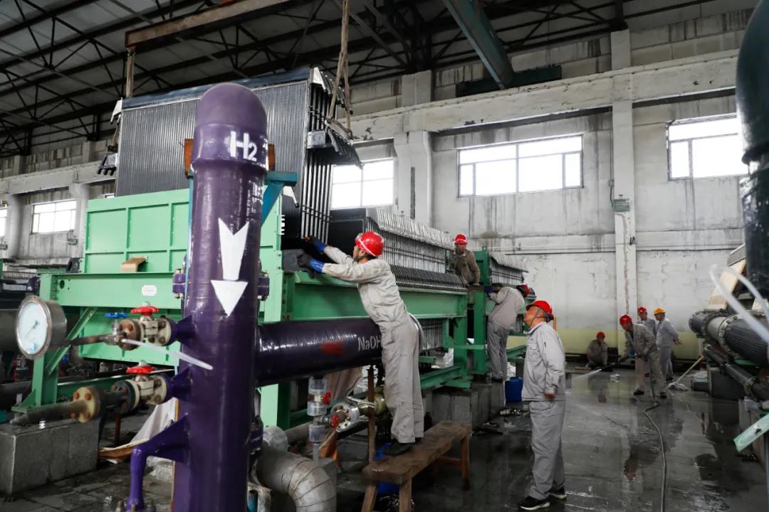 為實(shí)現(xiàn)極網(wǎng)進(jìn)降本增效,提高電解槽的電流效率,保障生產(chǎn)穩(wěn)定運(yùn)行,公司購買目前國(guó)際最 新技術(shù)nx--BiTAC PLUS電解槽,對(duì)舊設(shè)備進(jìn)行更新?lián)Q代。9月25日,電化廠5萬噸/年燒堿1#電解槽陰陽行更換,10月15日,電化廠20萬噸/年燒堿4#電解槽進(jìn)行技改。