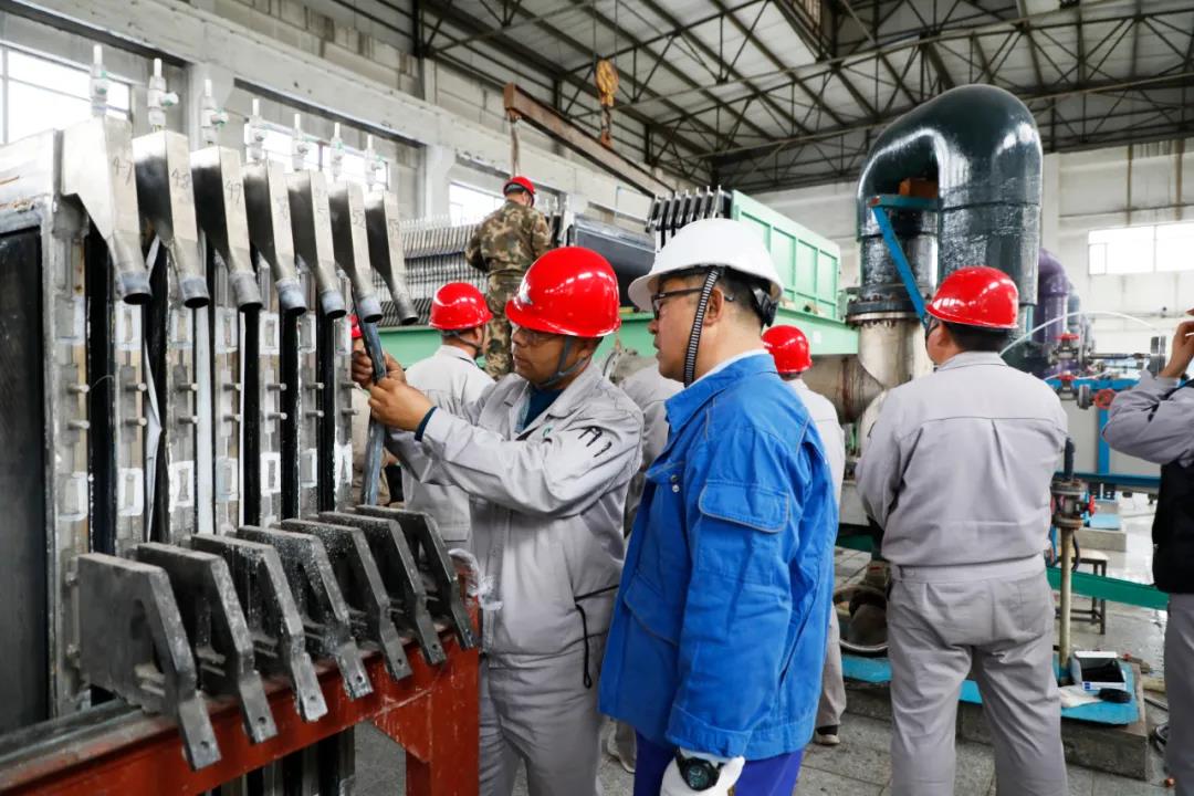 為了按時(shí)完成電解槽的拆槽、吊槽,貼膜,裝槽工作,保質(zhì)保量的順利開車,工人師傅們5:30到廠,6:00準(zhǔn)時(shí)開始貼膜,分廠領(lǐng)導(dǎo)一直蹲守現(xiàn)場(chǎng),嚴(yán)把每個(gè)工序質(zhì)量關(guān),檢修人員嚴(yán)謹(jǐn)細(xì)致,團(tuán)結(jié)協(xié)作,干部員工齊上陣,在保安全,保質(zhì)量的同時(shí),搶進(jìn)度,現(xiàn)場(chǎng)工作有條不紊,井然有序,在分廠干部員工的共同努力下,電解槽的技改工作按原計(jì)劃提前且順利完成。
