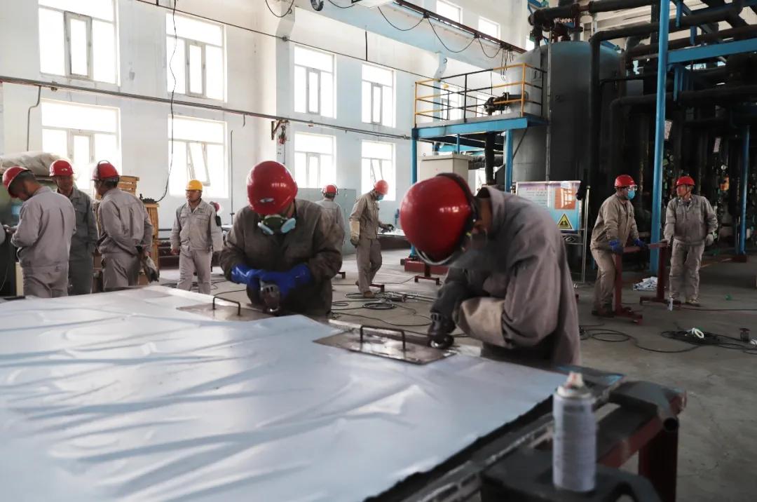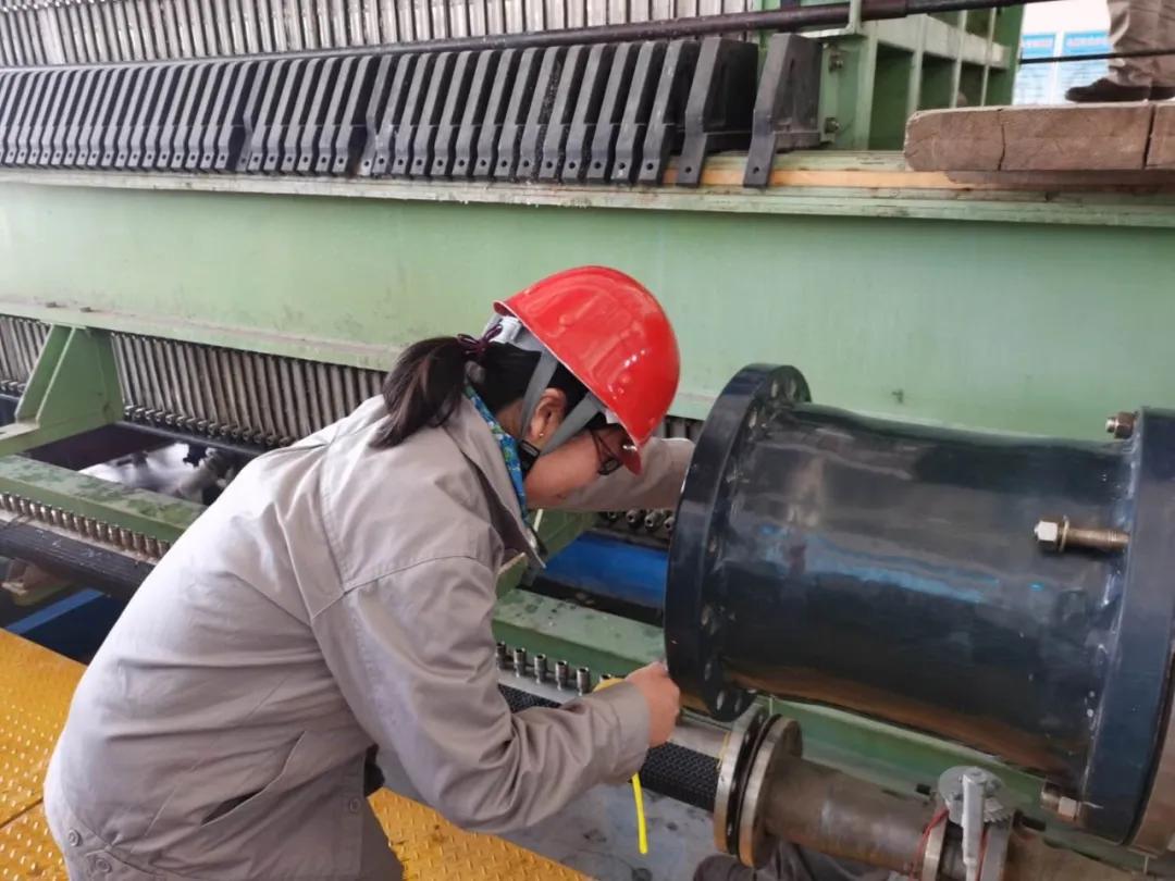 檢修開始后,工人師傅們依據(jù)檢修方案,分工有序、各負(fù)其責(zé),將檢修任務(wù)進(jìn)行的井然有序。分別有以下幾個(gè)方面:停槽置換排液系統(tǒng)隔離、銅排拆除、電解槽進(jìn)出液管拆除清洗安裝、舊墊片和舊離子膜拆除、電解槽打磨、粘帖新墊片、電解槽各部位檢查、沖洗電解槽、涂抹硅膠、泡膜養(yǎng)膜、電解槽貼膜組裝等,每一個(gè)環(huán)節(jié)都不能馬虎,每一個(gè)細(xì)節(jié)都有專人負(fù)責(zé)檢查驗(yàn)收。