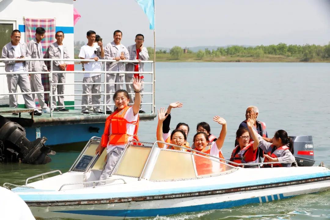 最愛湖東行不足,綠楊陰里白沙堤。在表彰結(jié)束后,伴著習習微風,勞模們開始了云竹湖游樂活動,放松身心,盡情領(lǐng)略迷人的山水風情,感受家鄉(xiāng)的山河美景。大家三五成群,漫步環(huán)湖跑道上,盡覽碧波蕩漾、鳥語花香的湖光山色,享受大自然的寧靜與安詳。一些人圍坐在樹蔭里,打著撲克,盡情享受這休閑時光,給心靈放個假。在湖邊渡口,勞模工友們有序排隊乘坐快艇,體驗刺激的水上樂趣,近距離感受湖中美景。