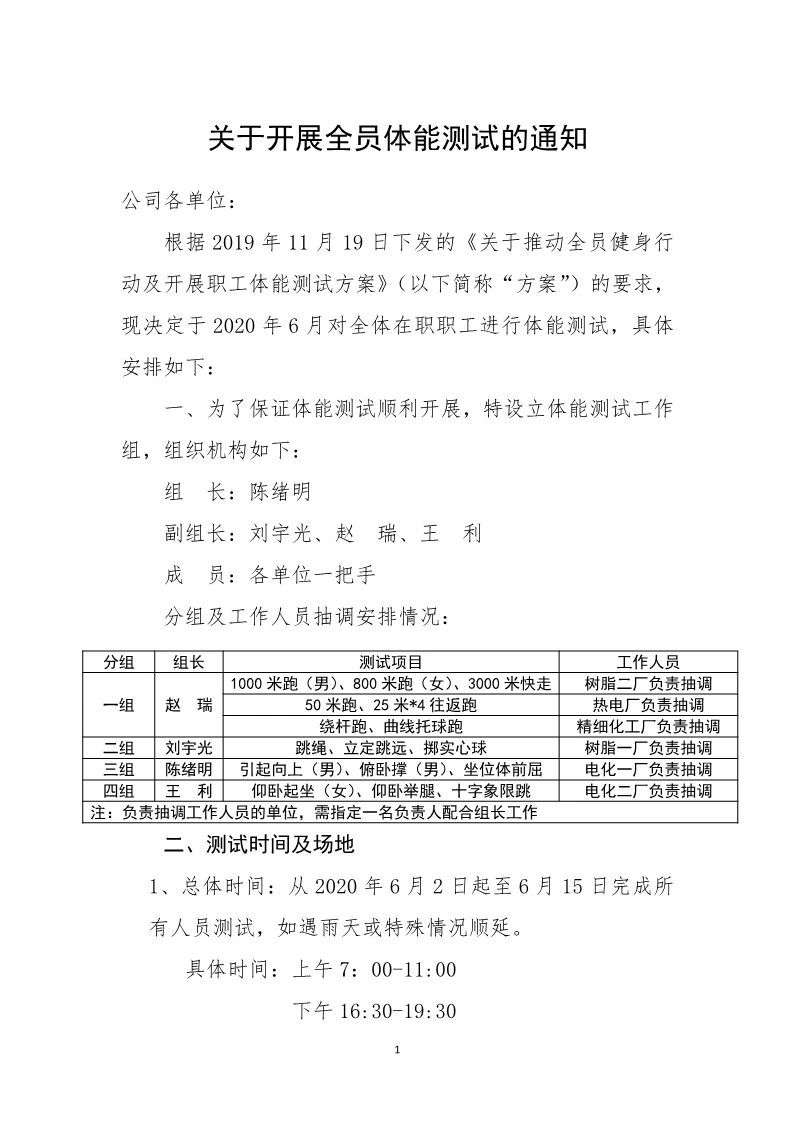 關(guān)于開(kāi)展全員體能測(cè)試的通知