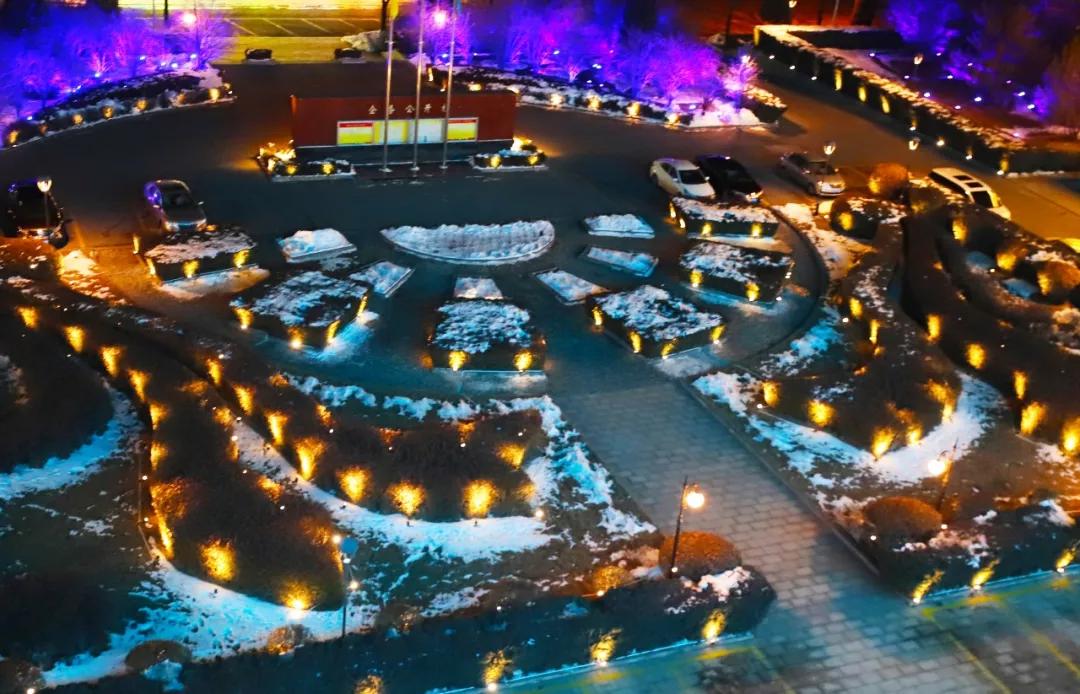 傍晚時(shí)分,夕陽(yáng)下沉,天空從淺藍(lán)變成墨藍(lán),這時(shí)候,公司的花燈也亮了起來(lái),年味兒就這樣悄無(wú)聲息地,鉆進(jìn)榆化人的眼睛里。平日下班后直接走出公司大門(mén)的員工們,在近日總會(huì)駐足欣賞這美好夜景。