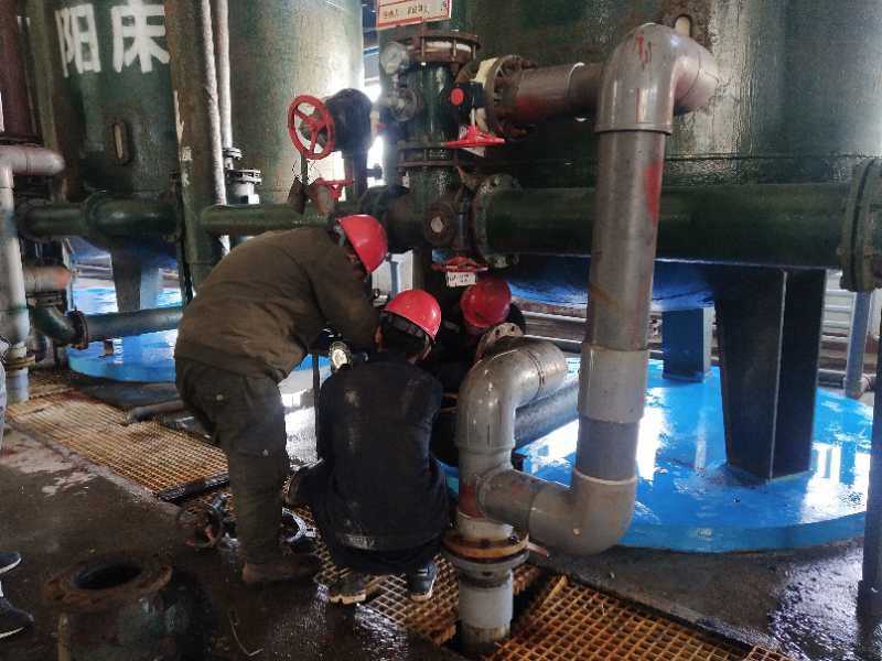 2月17日,公司安排一廠區(qū)停車,舊化水利用這次機(jī)會,把系統(tǒng)上的閥門拆檢52個,更換8個,檢查捕捉器9個,配合新項目留甩頭5個,清理蓮花池水塔,清理酸堿廢水池。為期3天的檢修,但因?yàn)樗奶厥庑裕5倪t,送的早,還得保證各分廠消防用水的供給,舊化水的停車檢修時間其實(shí)只有一天,時間緊,任務(wù)重,但是在領(lǐng)導(dǎo)的合理安排下,舊化水工段按時完成了停車檢修任務(wù)。