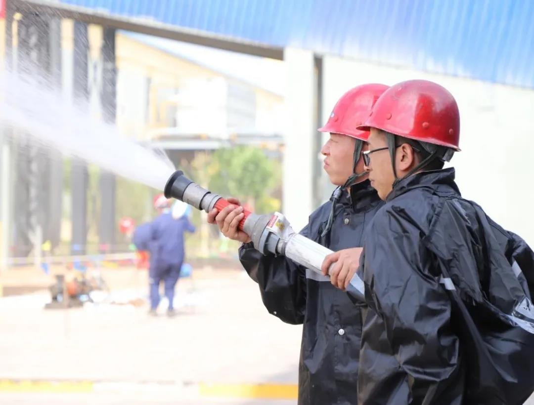 應(yīng)急演練中,安全科科長馮東對參演人員詳細講解了滅火器的正確使用方法、防化服和空呼的正確佩戴、各類消防器材的正確使用方法及火場逃生和自救的相關(guān)知識。大家按照應(yīng)急演練方案要求,開展實地演習,模擬火災(zāi)事故現(xiàn)場進行應(yīng)急演練實操活動。
