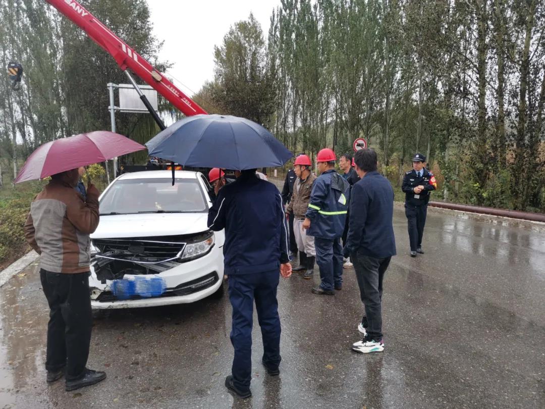 10月5日,滂沱大雨傾盆而下,趕往上大夜的員工苗師傅,在濱河路拐彎時(shí),由于雨天路滑,加上車內(nèi)視線不好,不慎將車滑落潭村橋下,幸好無人員傷亡。一大早,電化廠領(lǐng)導(dǎo)得知情況后,立即組織救援,馬上聯(lián)系吊車司機(jī),組織了檢修車間干部、四位鉗工,拿了兩根吊帶,在最短的時(shí)間內(nèi)趕往事發(fā)現(xiàn)場(chǎng)。