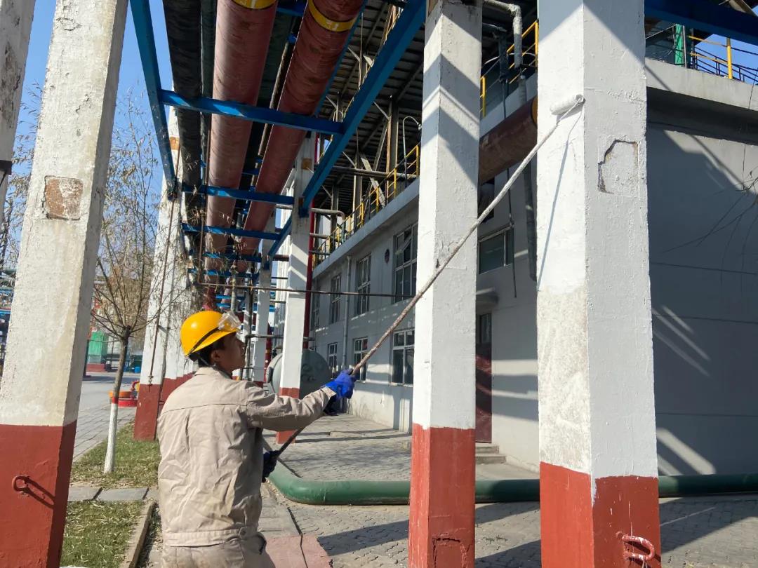 各工段在安全生產(chǎn)的前提下,從繪制墻面文化、油漆管架、粉刷墻體、柱子等方面開(kāi)展美化亮化廠區(qū)工作。一幅幅創(chuàng)意新穎、色彩亮麗的妙手丹青呈現(xiàn)在人們面前。每幅文化墻或惟妙惟肖或活靈活現(xiàn),再加上恰和時(shí)情的題字,激人奮進(jìn)的標(biāo)語(yǔ)總能給人一種眼前一亮的驚喜。 被粉刷過(guò)的墻體,柱子潔白如新,一塵不染。重新油漆過(guò)的管架,更是呈現(xiàn)出一種明亮耀眼的美感。清澈見(jiàn)底的水深度處理池內(nèi)魚(yú)兒在遨游,鴨子在水中嬉戲,此景與標(biāo)語(yǔ)“抓好污水治理,再現(xiàn)碧水清流”是那樣的貼切、吻合。鮮紅的標(biāo)語(yǔ)、清流碧波與藍(lán)天白云交相輝映,美不勝收,美感十足!