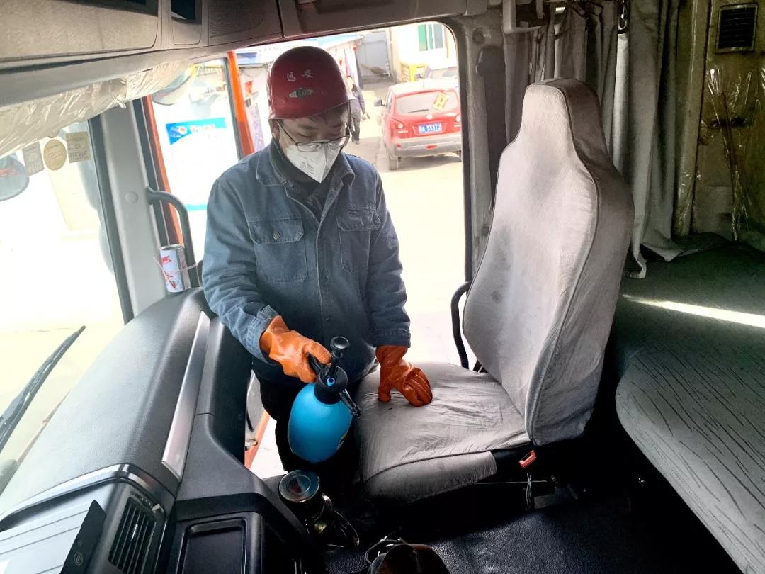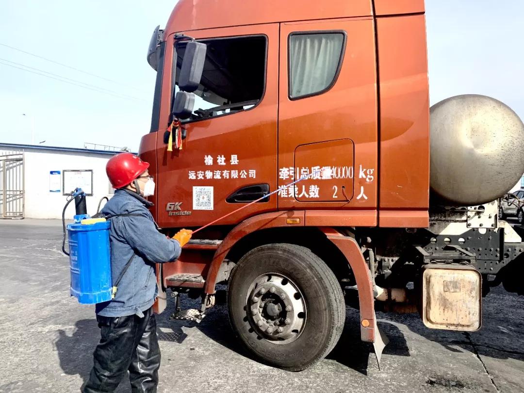 (防疫值班人員正在給進(jìn)出廠車輛消毒)