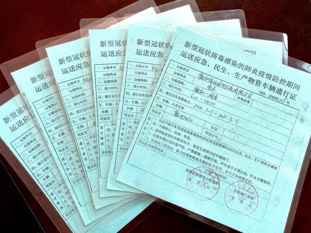 (辦理的通行證拿到后,公司員工加班加點(diǎn),將70輛車的通行證信息完成錄入并塑封,保證第二天正常出車。)