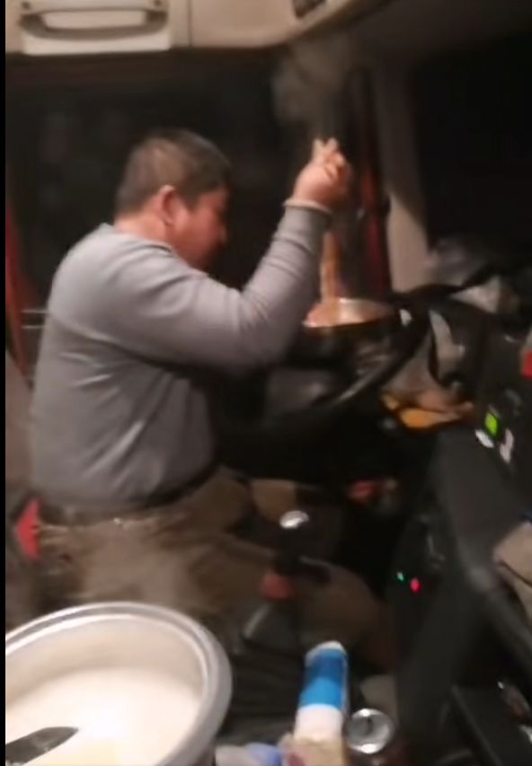 (司機(jī)師傅在服務(wù)區(qū)吃著熱騰騰的泡面)