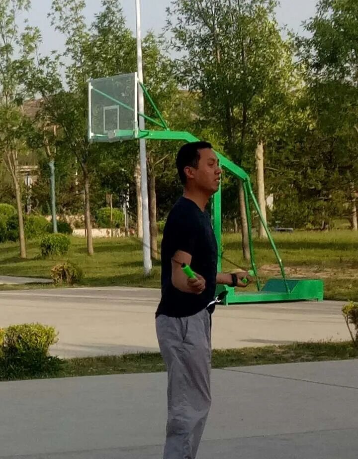 跳繩飛舞快如電,大叉一劈勢如虹。