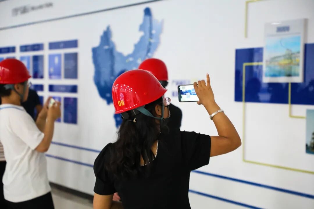 在電解車間、包裝車間、污水處理工段、集控中心......參觀人員面對充滿現(xiàn)代化、科技感的先進儀器設備,好奇不已,工作人員面帶微笑耐心解答大家的提問,言語中透露著濃濃的自豪感。