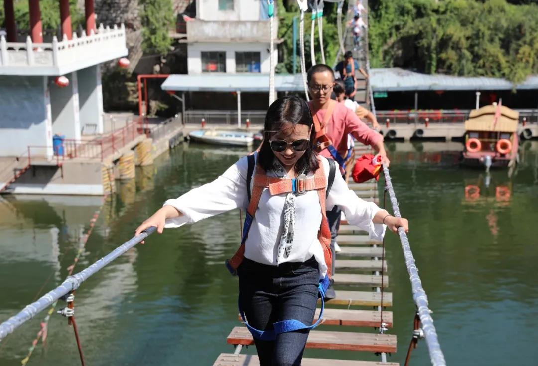午餐結(jié)束,稍作休息,我們便起身前往下一個景點——娘子關(guān)瀑布。“娘子關(guān)頭懸瀑布,飛騰入谷化潛龍”,一股股山泉飛流直下,我們在山腳下望著、激動著。懸崖一側(cè)是玻璃棧道,通過玻璃棧道便是玻璃吊橋,在橋上娘子關(guān)的風景盡收眼里,真是讓人流連忘返。從橋上下來,我們一行人開始了難忘的激流勇進,雖有點濕身,卻也一個個開懷大笑。接著我們乘船開始游覽平陽湖,據(jù)說這里是平陽公主當年鎮(zhèn)守的地方所在,她的故事可歌可泣,讓我們后輩們也以她為傲。