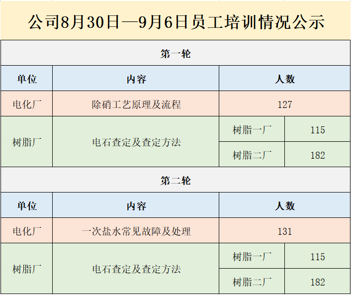 公司8月30日—9月6日員工培訓(xùn)情況公示