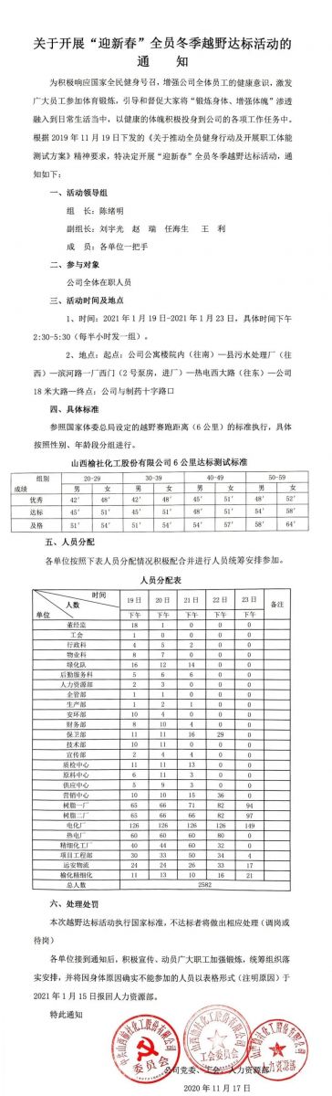 公司關(guān)于開展“迎新春”全員冬季越野達標(biāo)活動的通知