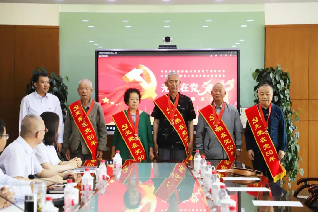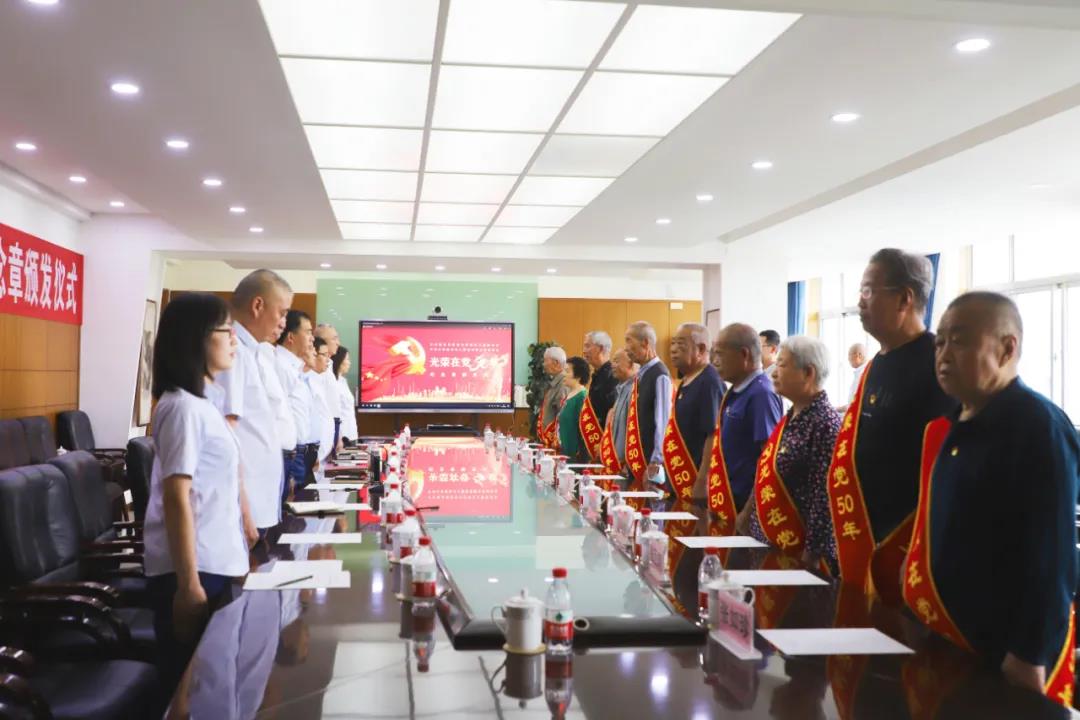 一百年征程浩蕩,五十載初心如磐。在建黨100周年之際,6月25日上午,公司舉行了莊重簡樸的“光榮在黨50年”紀念章頒發(fā)儀式,為黨齡達到50周年的老黨員代表頒發(fā)“光榮在黨50年”紀念章。頒發(fā)儀式由公司黨委副書記郜建軍同志主持,公司黨委委員、支部班子成員代表、黨代表、預備黨員代表參加會議。中共榆社經(jīng)濟技術(shù)開發(fā)區(qū)黨工委書記王衛(wèi)東同志出席會議并發(fā)表講話。