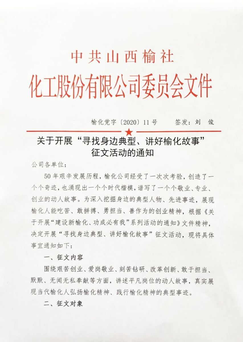 《關于開展“尋找身邊典型、講好榆化故事”征文活動的通知》