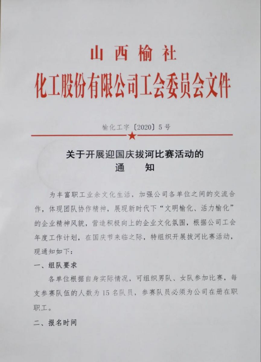 關(guān)于開展迎國(guó)慶拔河比賽活動(dòng)的通知