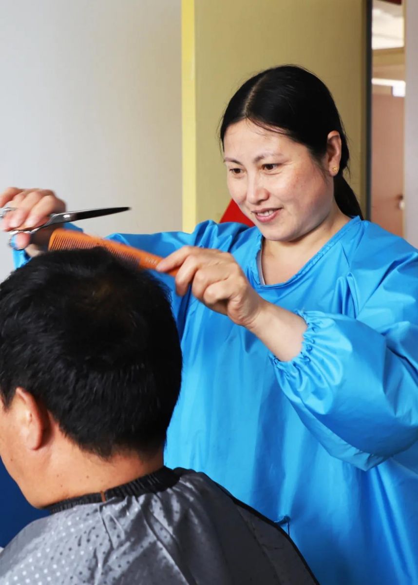 進(jìn)門(mén)來(lái),發(fā)長(zhǎng)須亂相貌老;出門(mén)去,眉清目秀年紀(jì)輕。隨著“理發(fā)匠人”揮舞的雙手,剪刀上下翻飛、頭發(fā)簌簌掉落……很快,一個(gè)精神抖擻的面容便出現(xiàn)在大家的視野中。理完發(fā)的員工頓時(shí)神清氣爽、面貌一新。“太好了!感覺(jué)自己頭上的負(fù)擔(dān)又變輕了”,“沒(méi)了三千煩惱絲,工作起來(lái)又方便了!” 員工們的喜悅之情溢于言表。