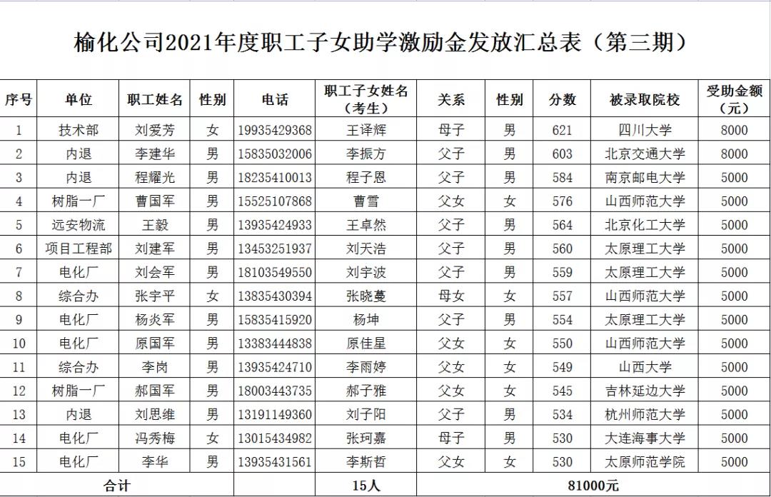 公司開展助學(xué)激勵(lì),既是關(guān)愛職工辦實(shí)事、解民憂的“民生工程”,也是對(duì)青年人才教育的極大支持?;顒?dòng)自2019年啟動(dòng)以來,已資助職工子女35人,累計(jì)發(fā)放助學(xué)激勵(lì)金205000元,受到了廣大員工以及社會(huì)各界的廣泛贊譽(yù)!其中,今年符合受助條件的有15人,共計(jì)發(fā)放助學(xué)激勵(lì)金81000元。