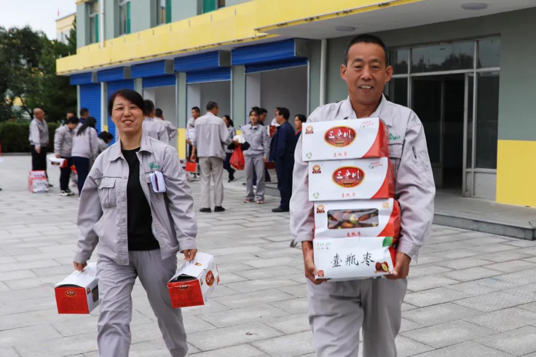 9月25日,月餅的香甜還留在唇齒間,公司就又為全體員工發(fā)放了太谷壺瓶脆棗。甜上加甜,甜進心間,讓每一位員工再一次感受到作為一名榆化人的幸福與自豪。榆化給員工發(fā)放的福利不僅在節(jié)日,更在點點滴滴的日常生活里。