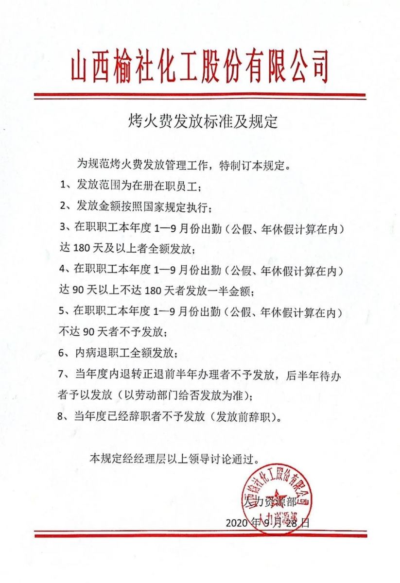 本次烤火費發(fā)放涵蓋總公司、遠(yuǎn)安物流、榆化精細(xì)化全體在冊在職員工共計2790人,按照國家3360元的標(biāo)準(zhǔn)執(zhí)行,結(jié)合公司2020年出臺的烤火費發(fā)放標(biāo)準(zhǔn),共計發(fā)放總金額934.08萬元。