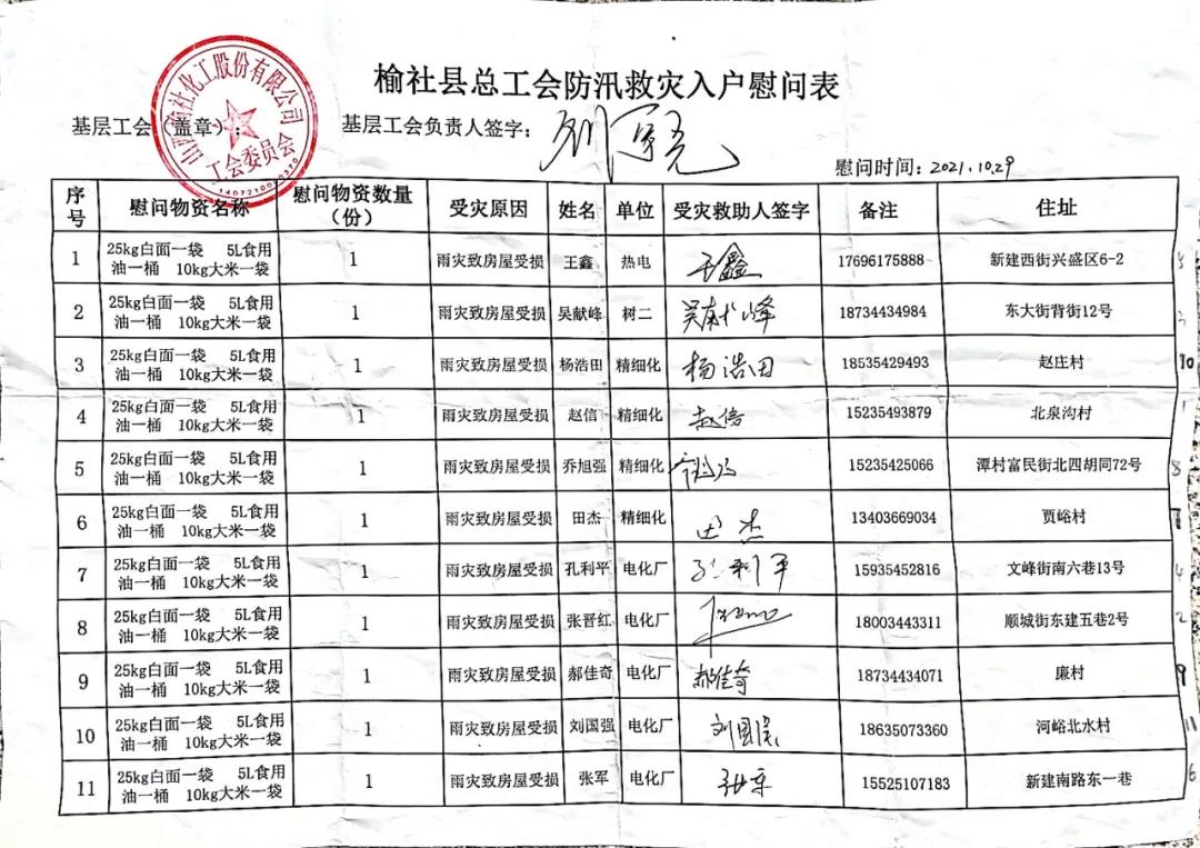 “這次連續(xù)強(qiáng)降雨讓不少街坊鄰居受災(zāi)受損,公司及時(shí)給我們送來了慰問物資,保障了我們的基本生活,也更增加了我們?yōu)暮笾亟ǖ男判?,真正感到了做榆化人的幸福與自豪。”拿到慰問物資的員工紛紛感謝公司的溫情關(guān)懷和工會(huì)組織的熱情慰問。