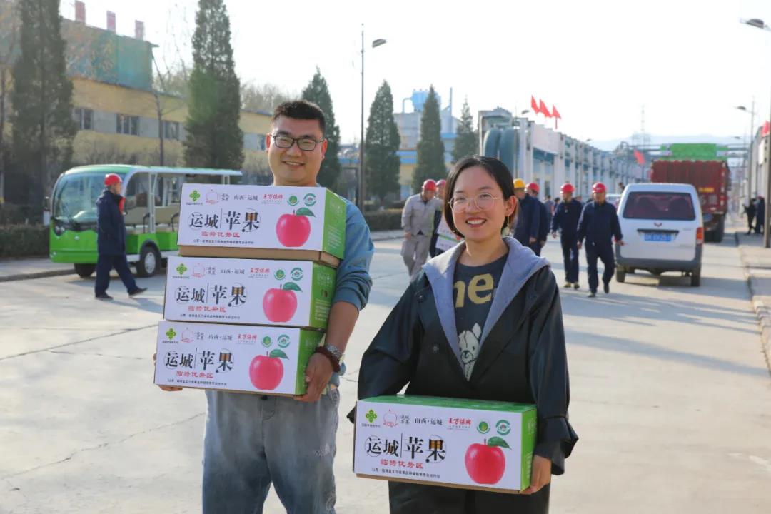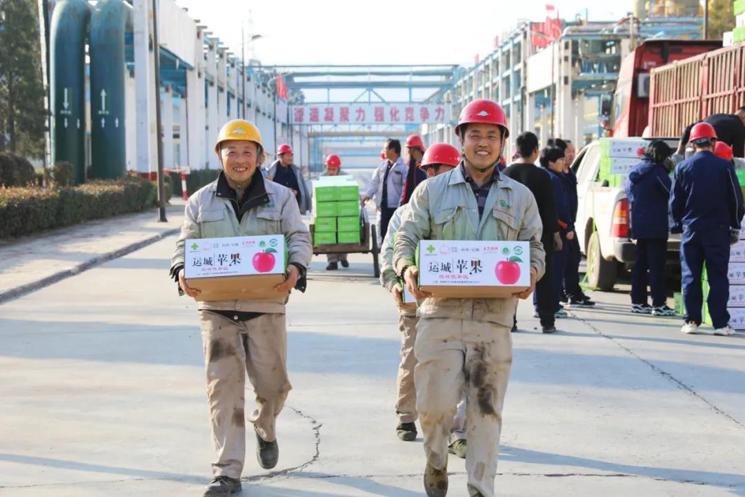 車上整齊碼放的一箱箱蘋果在各單位有序安排和齊心協(xié)力傳遞中卸下?,F(xiàn)場人員配合默契,一箱箱紅彤彤的蘋果陸續(xù)發(fā)放到員工手中,歡聲笑語的打趣聲、手捧肩扛的場景熱鬧非凡。