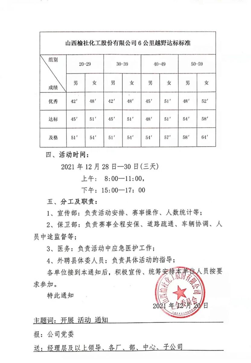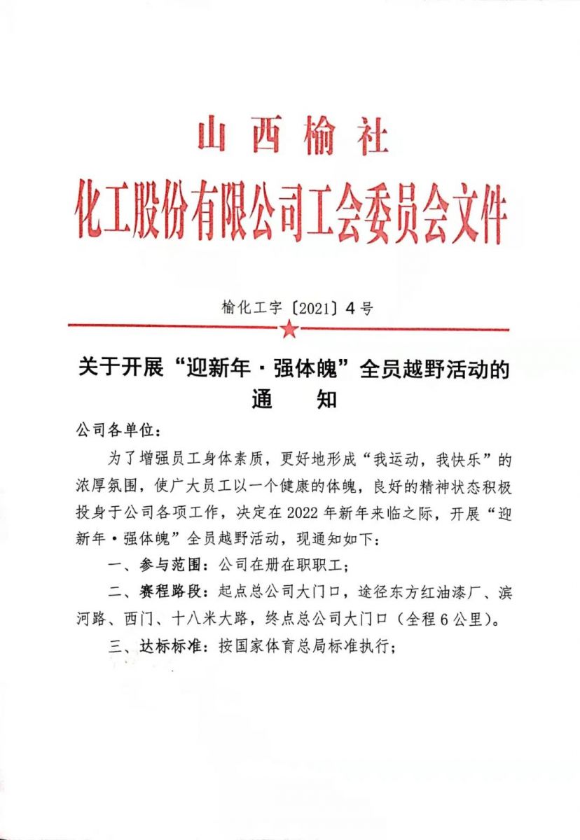榆化公司關(guān)于開展“迎新年 · 強體魄”全員越野活動的通知