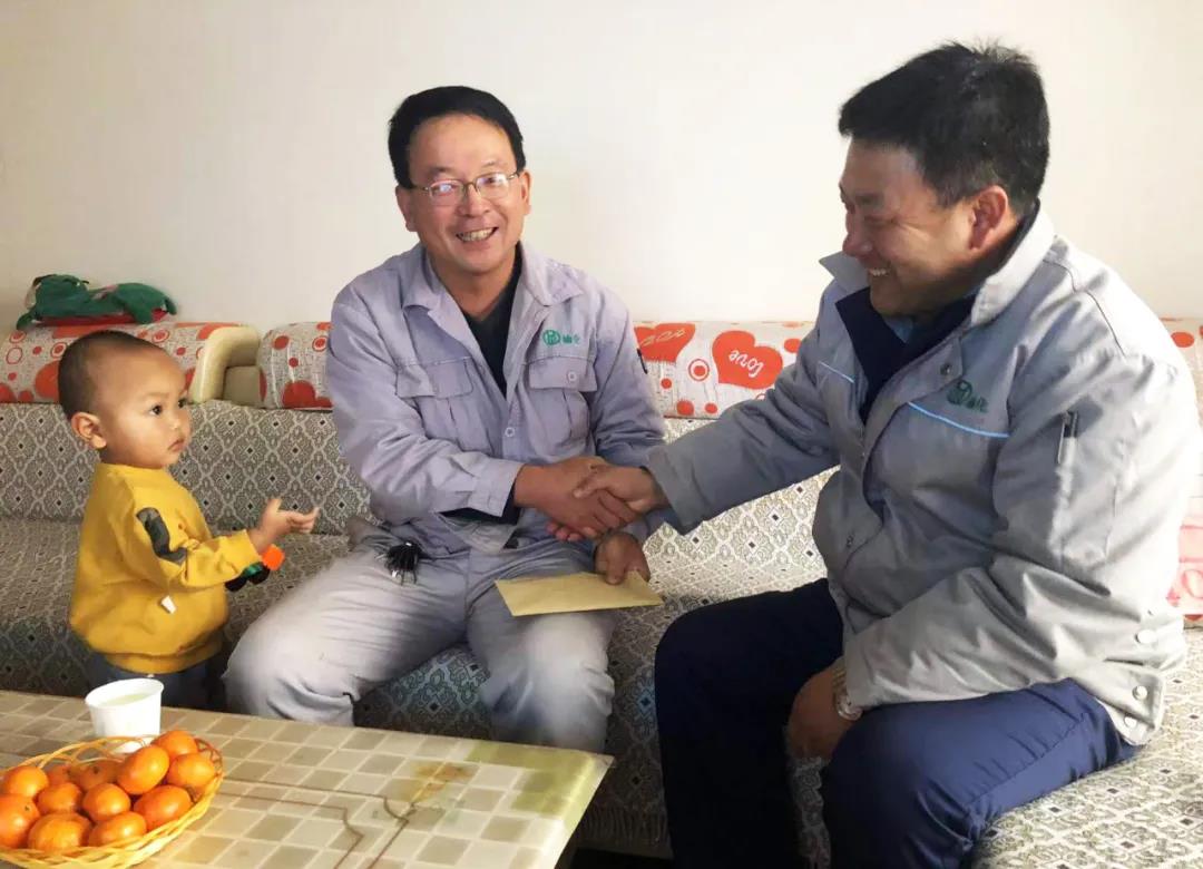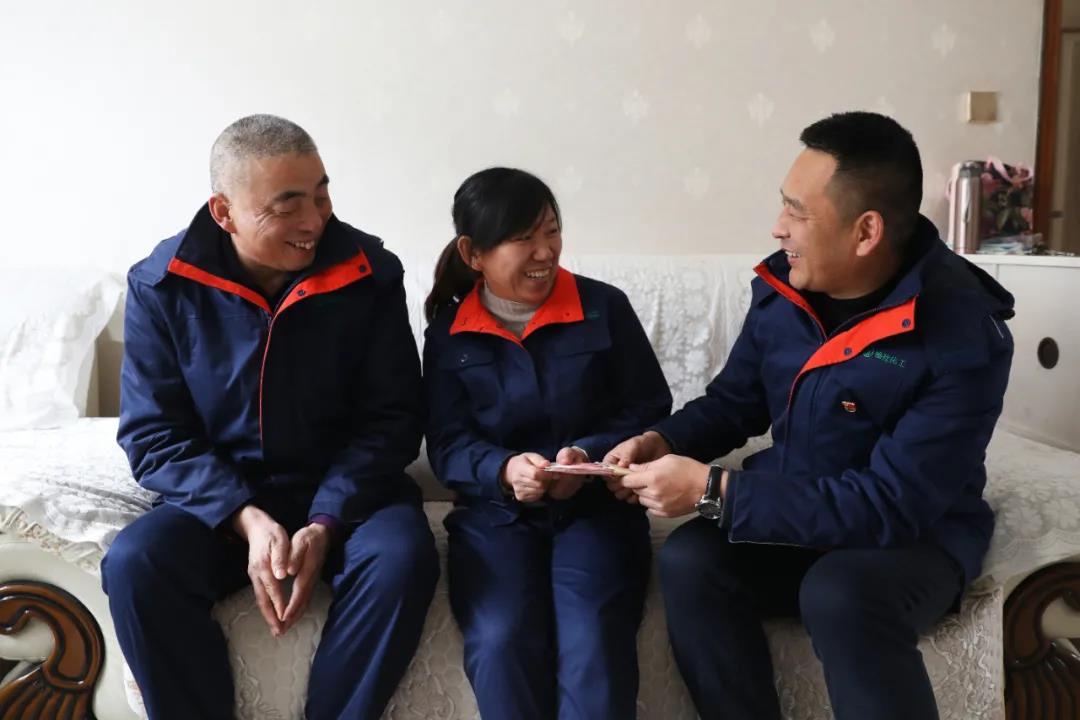 一位員工的母親抹著淚說道:“兒子在榆化工作多年,隔三差五就往家里拿福利,引得鄰居一陣羨慕。這次在生病困難的時候,公司還能夠想著我們,領(lǐng)導(dǎo)能親自來看望我們,真的很感動,感謝榆化的關(guān)懷。”