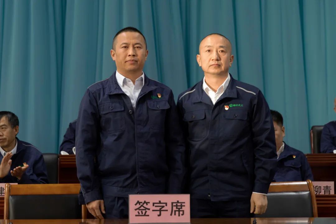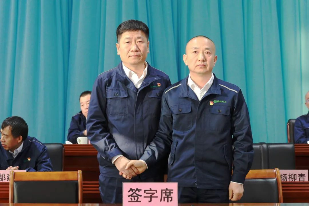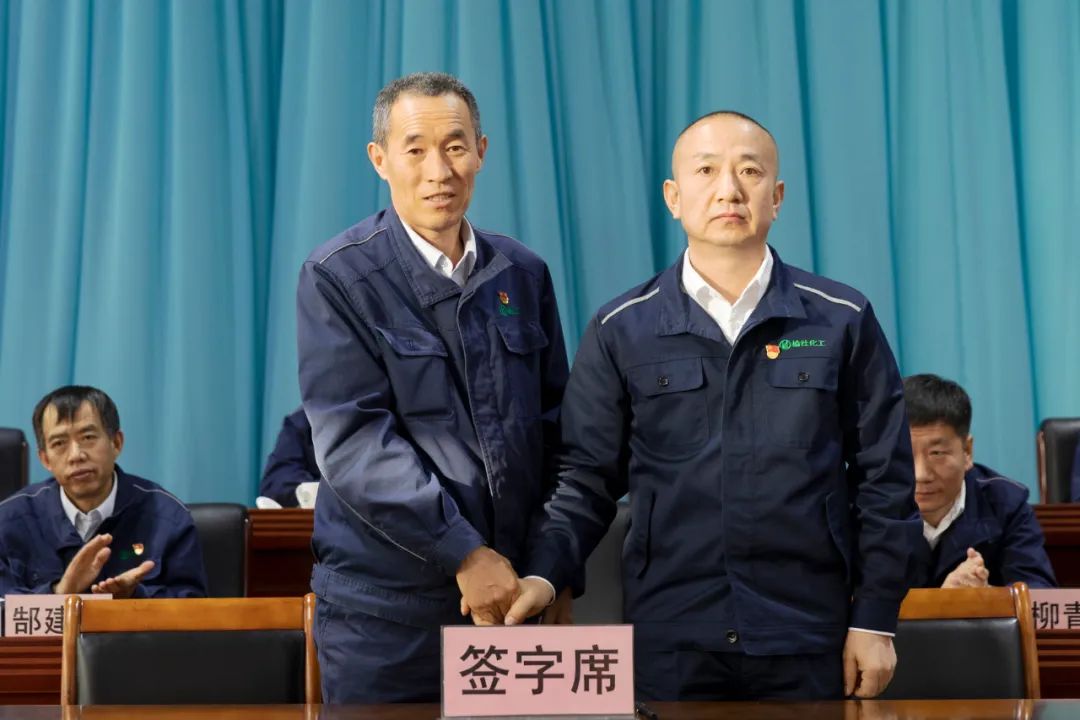 (董事長劉俊與榆化精細(xì)化工有限公司法人代表王晉簽訂目標(biāo)責(zé)任書)