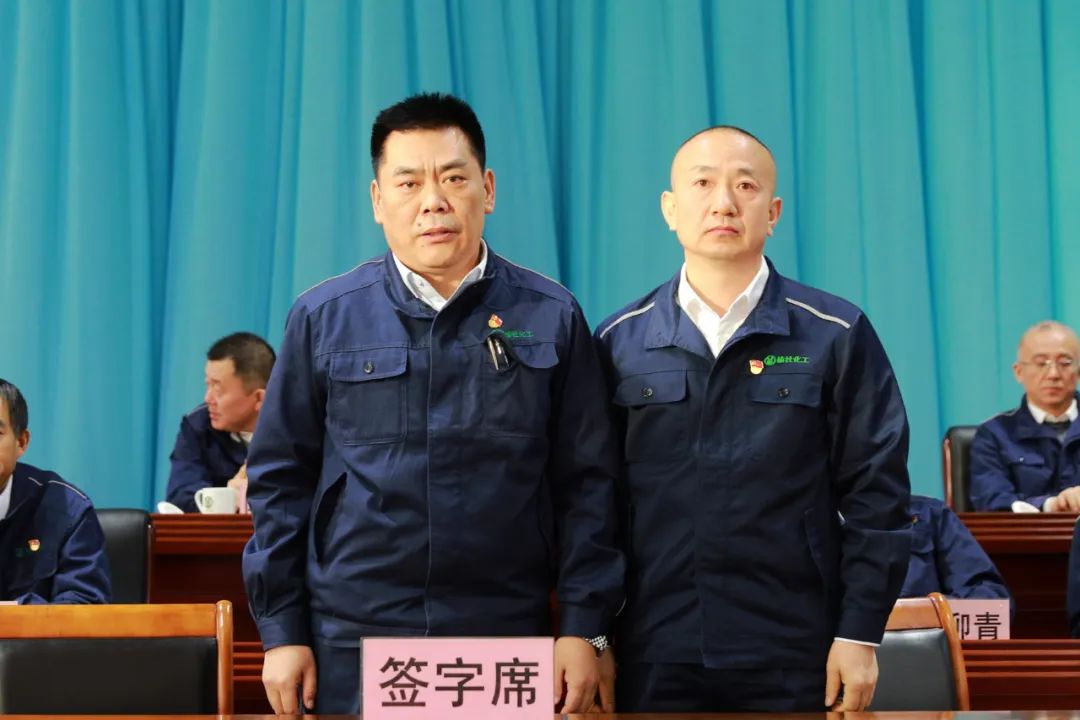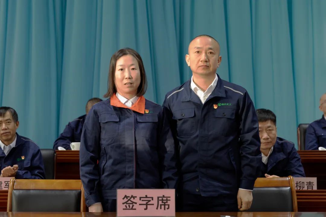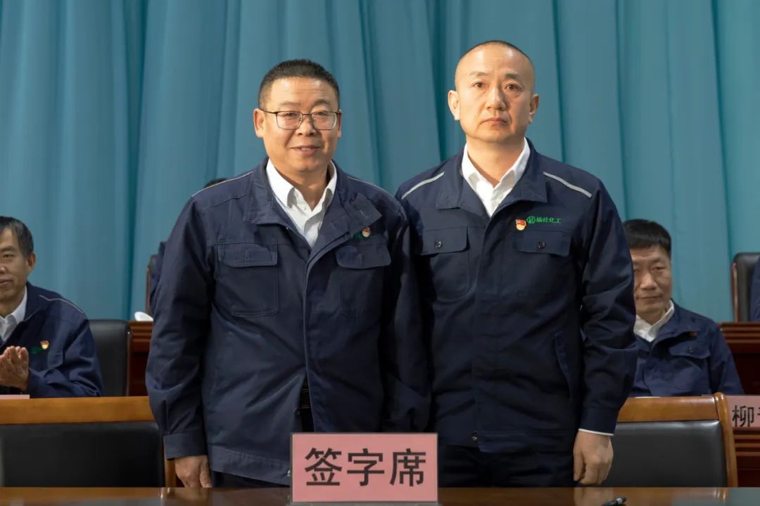 公司黨委書記、董事長劉俊分別與總經(jīng)理、總工程師、財(cái)務(wù)總監(jiān)、人力資源總監(jiān)、遠(yuǎn)安物流有限公司法人代表、榆化精細(xì)化法人代表簽訂2023年度《工作目標(biāo)責(zé)任書》和《安全、消防、環(huán)保工作目標(biāo)責(zé)任書》