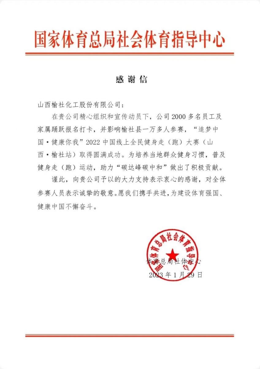 這封帶著溫度的感謝信,是對(duì)健康榆化建設(shè)的肯定,也是對(duì)榆化人健康生活的點(diǎn)贊。近年來(lái),公司積極響應(yīng)國(guó)家全民健身號(hào)召,修繕職工籃球場(chǎng)、羽毛球場(chǎng)地,新建職工健身館等,為員工提供良好的運(yùn)動(dòng)健身?xiàng)l件;舉辦籃球賽、拔河賽等賽事,組織榆化拔河隊(duì)參加省、市、縣拔河爭(zhēng)霸賽,并取得優(yōu)異成績(jī);開展全員體能測(cè)試、越野達(dá)標(biāo)、健身達(dá)標(biāo)等活動(dòng),促進(jìn)員工關(guān)注體重指數(shù)、血壓、心率等身體指標(biāo),引導(dǎo)員工培養(yǎng)健康的生活方式,為企業(yè)文化注入健康、文明、自律的新內(nèi)涵。健康榆化為榆化人的幸福“加碼”。