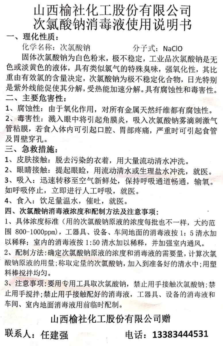 最后,榆化公司再次提醒大家,為各單位提供的次氯酸鈉消毒液濃縮制劑屬于?;?,一定要小心使用。(張?jiān)疲?/span>