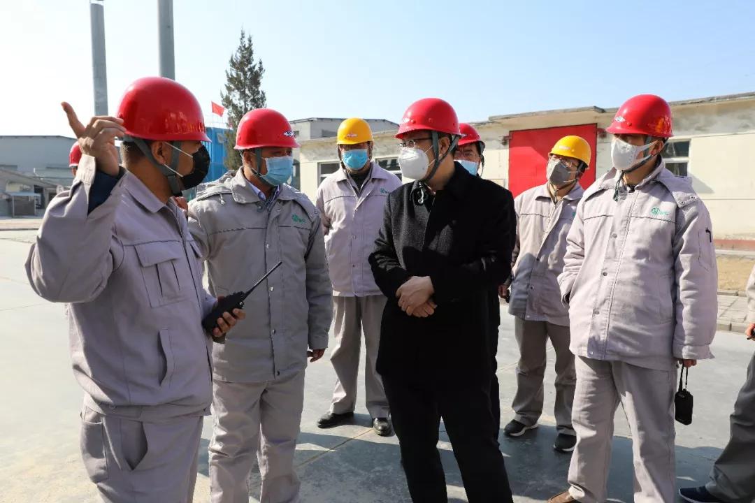2月12日上午,市應(yīng)急管理局副局長范忠孝帶隊(duì)深入公司檢查疫情期間的安全管理工作。縣應(yīng)急管理局局長陳軍、副局長王東躍、馬星,公司副總經(jīng)理任開宇、安環(huán)部部長王柱軍等陪同。