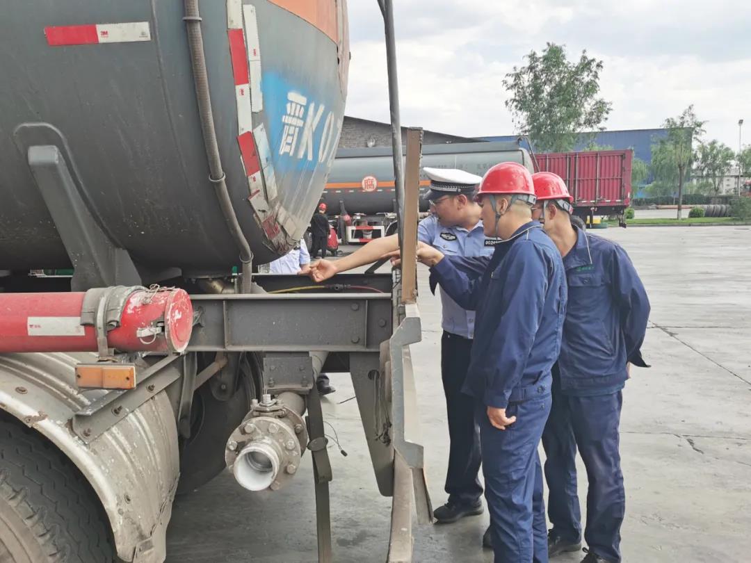 6月21日,平榆高速六支隊五大隊副隊長賀永平帶隊到公司遠(yuǎn)安物流開展安全檢查工作,安全科科長裴永軍、市場科科長岳二軍陪同。