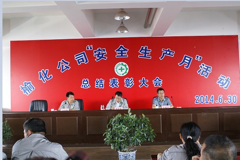 公司董事長(zhǎng)趙效青為安全月活動(dòng)綜合評(píng)比前三名的電化一廠、樹脂二廠、樹脂一廠頒發(fā)獎(jiǎng)牌和獎(jiǎng)金。