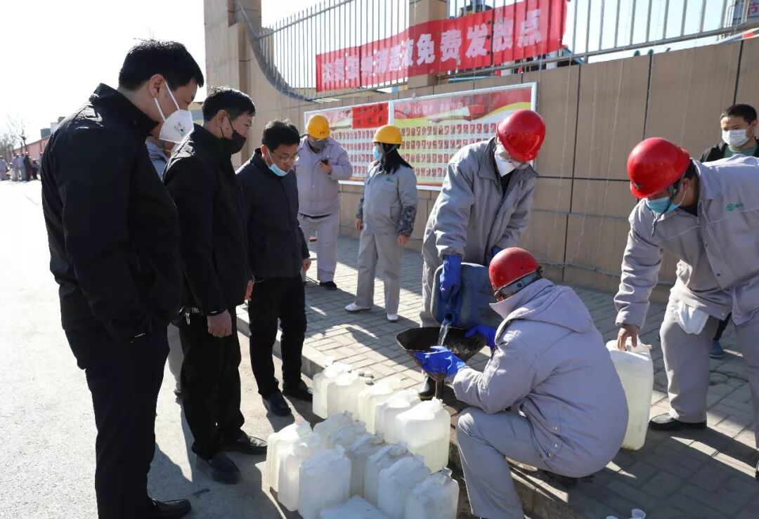 疫情發(fā)生后,公司毅然做出緊急支援縣域公共衛(wèi)生消毒的決定。次氯酸鈉溶液是84消毒液的主要成分,隨著疫情的蔓延,消毒液需求驟增。為防止新型冠狀病毒肺炎疫情傳播或蔓延,切實打好人民群眾健康保衛(wèi)戰(zhàn),在國內(nèi)市場消毒產(chǎn)品緊缺的情況下,榆化公司利用自身資源及工藝優(yōu)勢,自制次氯酸鈉消毒液(和84消毒液成分相同)。自1月31日起,為榆社縣各機關(guān)、企事業(yè)單位、社區(qū)、鄉(xiāng)、鎮(zhèn)、村等免費提供,全力保障廣大群眾對消殺用品的需求。