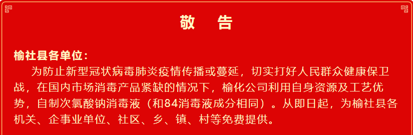 自2019年12月12日首例新型冠狀病毒感染的肺炎患者在武漢市被發(fā)現(xiàn)后,這一重大公共衛(wèi)生事件已歷時一個半月有余,并最終演變?yōu)橐黄?ldquo;國際關(guān)注的突發(fā)公共衛(wèi)生事件”。自1月25日山西啟動重大突發(fā)公共衛(wèi)生事件一級響應后,榆化公司將抗擊疫情作為當前壓倒一切的頭等大事,在全力做好企業(yè)防疫工作的同時,為全省各市縣無償捐贈次氯酸鈉消毒液,同舟共濟,全力打贏新型冠狀病毒感染的肺炎疫情阻擊戰(zhàn)。那么,我們來看看這些天,榆化為了抗擊疫情做了哪些工作呢?