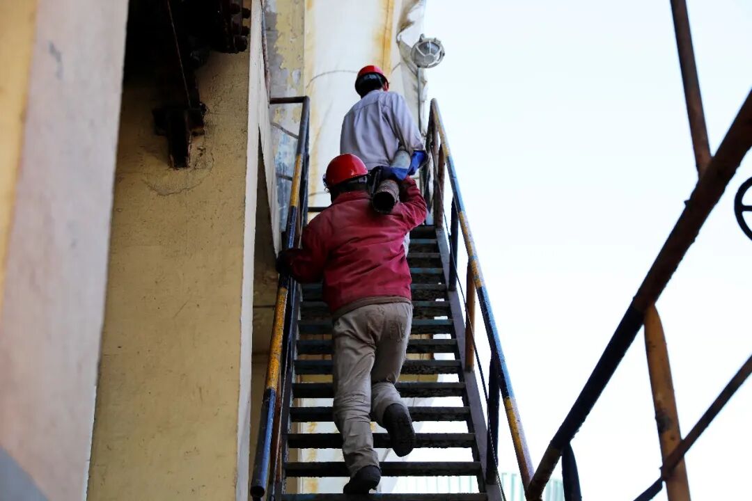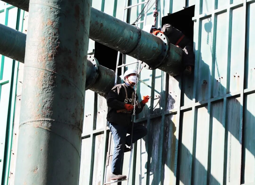 (電解一樓焊5#電解槽堿液下液管火花四濺)