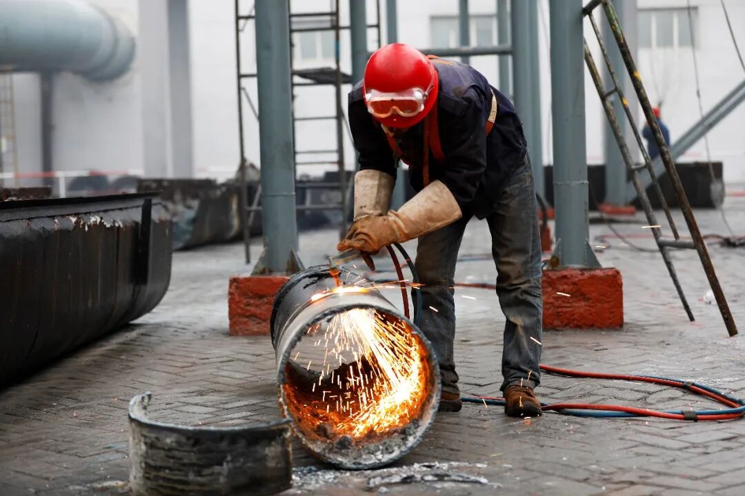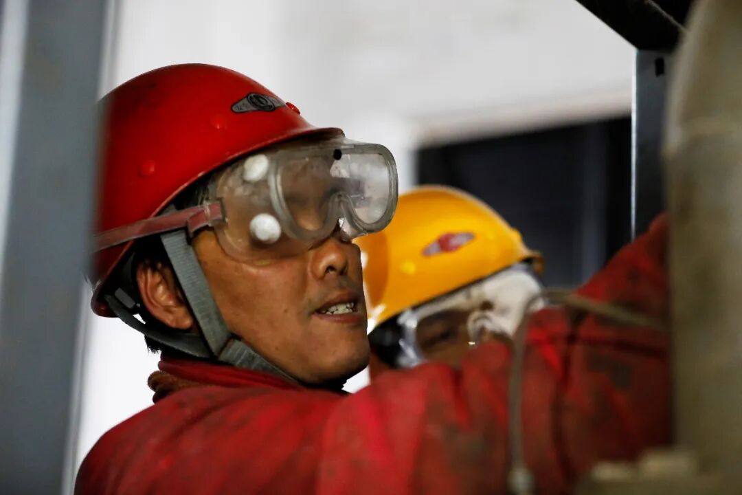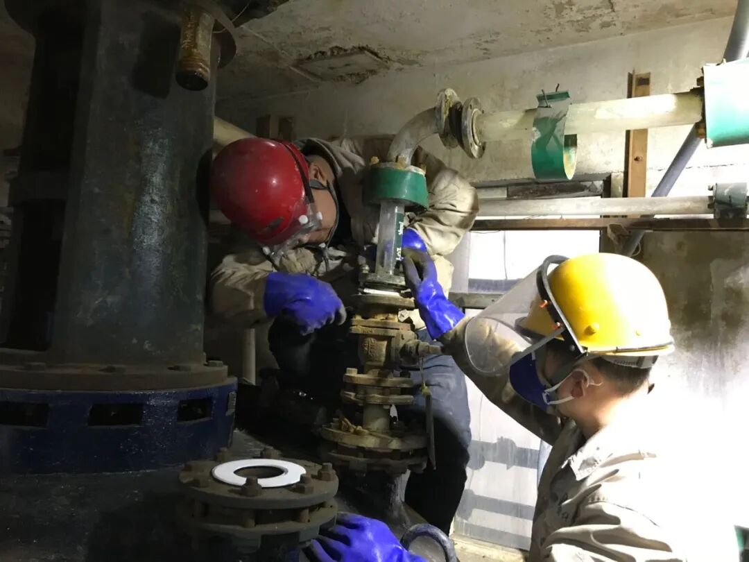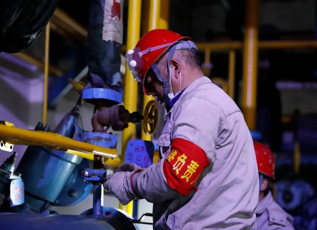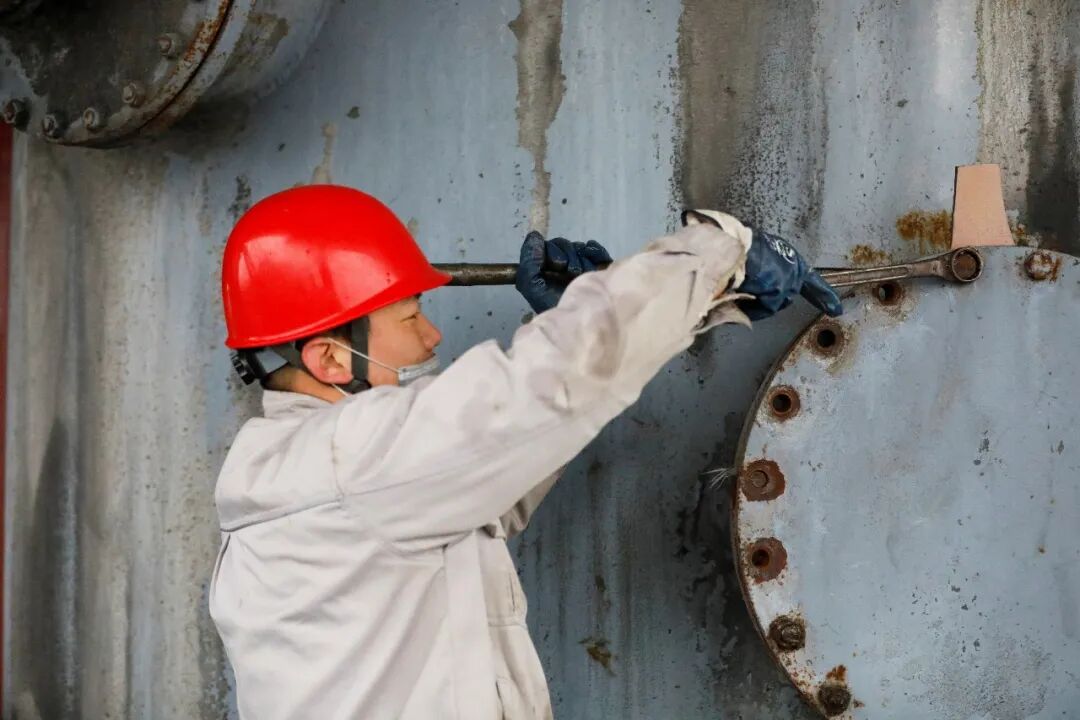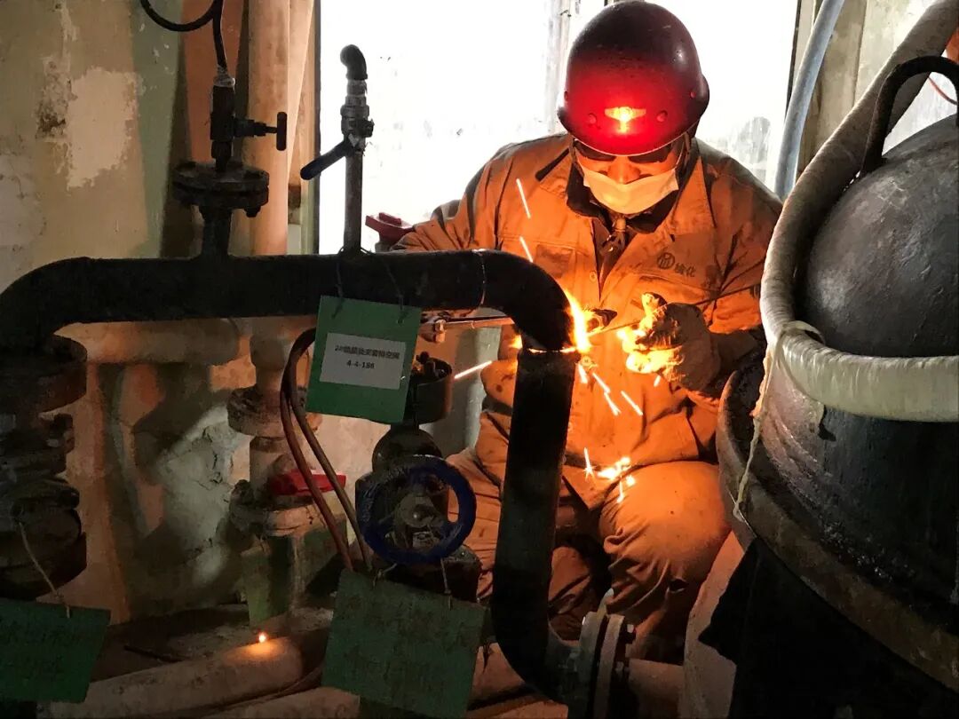 冒雪進(jìn)行乙炔冷卻器吊裝作業(yè)