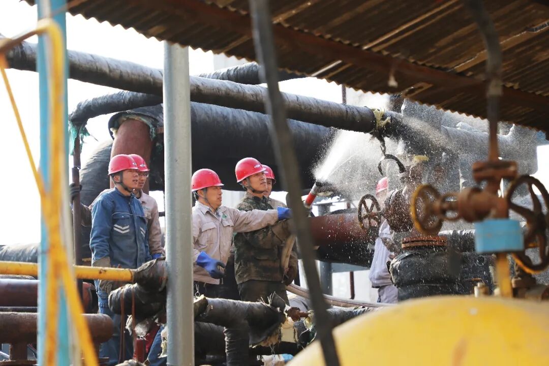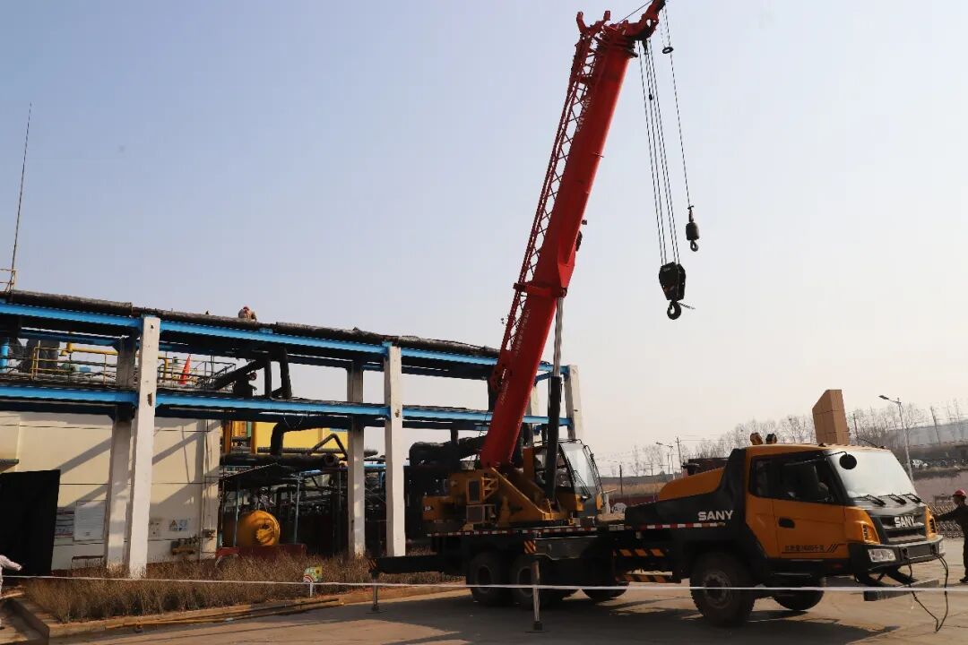在拆除作業(yè)前,我們嚴(yán)格進(jìn)行系統(tǒng)置換,待所有管線用蒸汽仔細(xì)吹除后,再改接氮?dú)鈱λ性O(shè)備及管線逐臺、逐條有秩序地進(jìn)行氮?dú)庵脫Q,確保含氨量小于0.5%時,方可開始拆除。