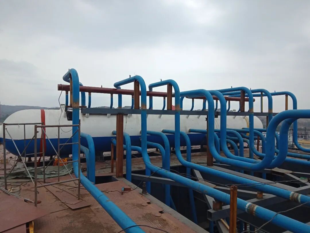 汽包與水冷壁、水冷屏、省煤器懸吊聯(lián)箱,過(guò)熱器聯(lián)箱連接管全部安裝焊接完成
