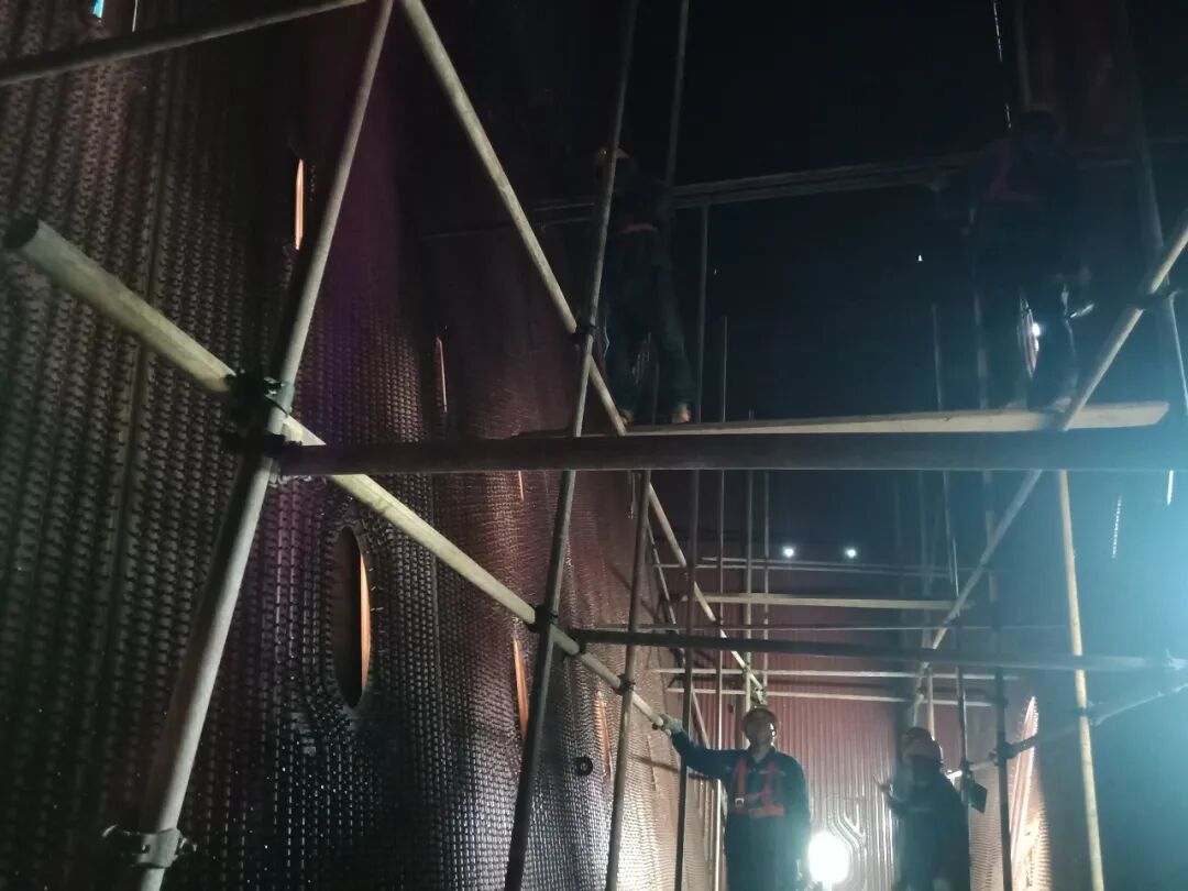 下降管與水冷壁、水冷屏連接管全部組裝完成,正在焊接