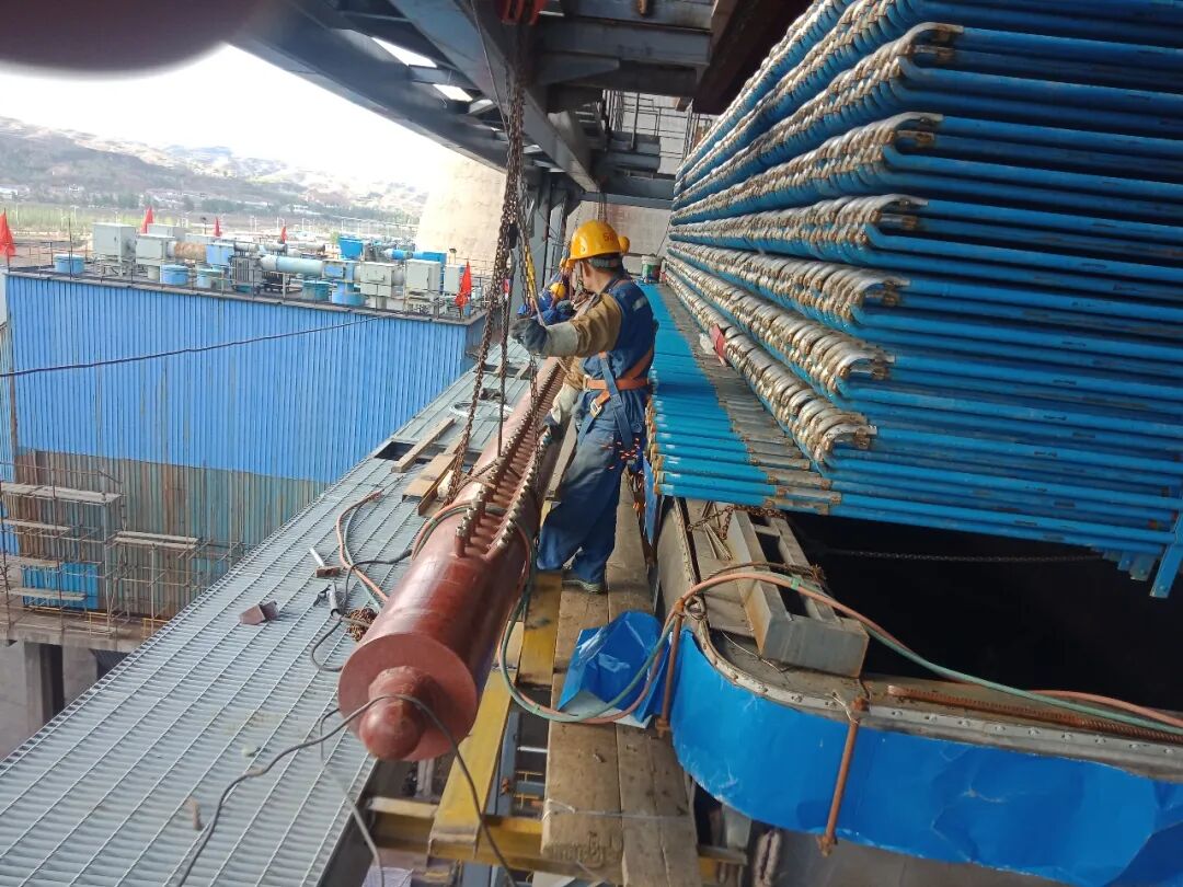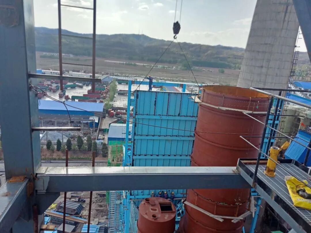上下級(jí)省煤器全部就位,準(zhǔn)備安裝上級(jí)省煤進(jìn)口集箱