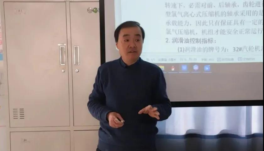 培訓(xùn)中,徐總針對(duì)離心式氯氣壓縮機(jī)的系統(tǒng)、工作原理、使用條件;潤(rùn)滑油系統(tǒng)的功能;密封氣系統(tǒng)操作規(guī)程;主機(jī)喘振原因、危害及預(yù)防調(diào)節(jié)措施;備用設(shè)備的保護(hù)等內(nèi)容進(jìn)行了詳細(xì)講解。